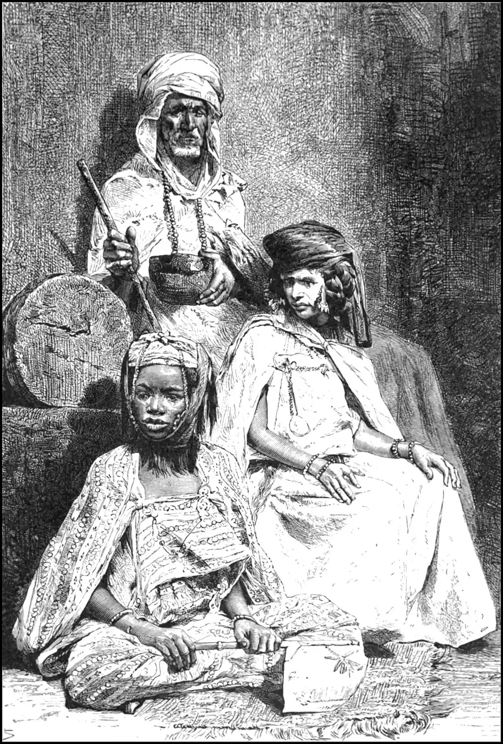 According to the census of 1882, the whole group of oases comprise about 193,000 palms, with a population of over thirty thousand. Nearly all are owners of a small plot, so that there are no mendicants in the confederation. Those