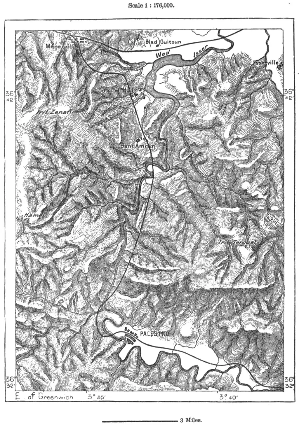 Near the waterparting between the sources of the Teser and the eastern slope of the Shelif stands the rising town of Berwagha, an important agricultural centre, where the French have established a model farm, a school of agriculture, and a rural convict station containing over a thousand criminals. Below the abrupt bend of the Isser round the hills of Great Kabylia lies Palestro, a flourishing place founded since the opening of the road which penetrates through the gorges of the river, and which is now accompanied by a railway. Since the massacre of some