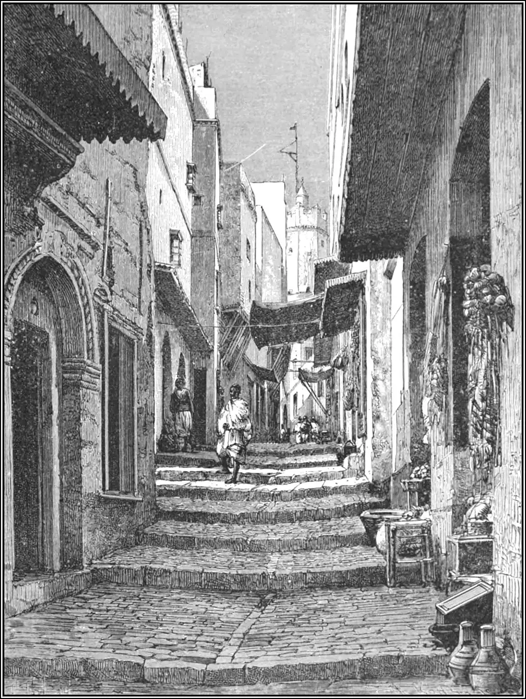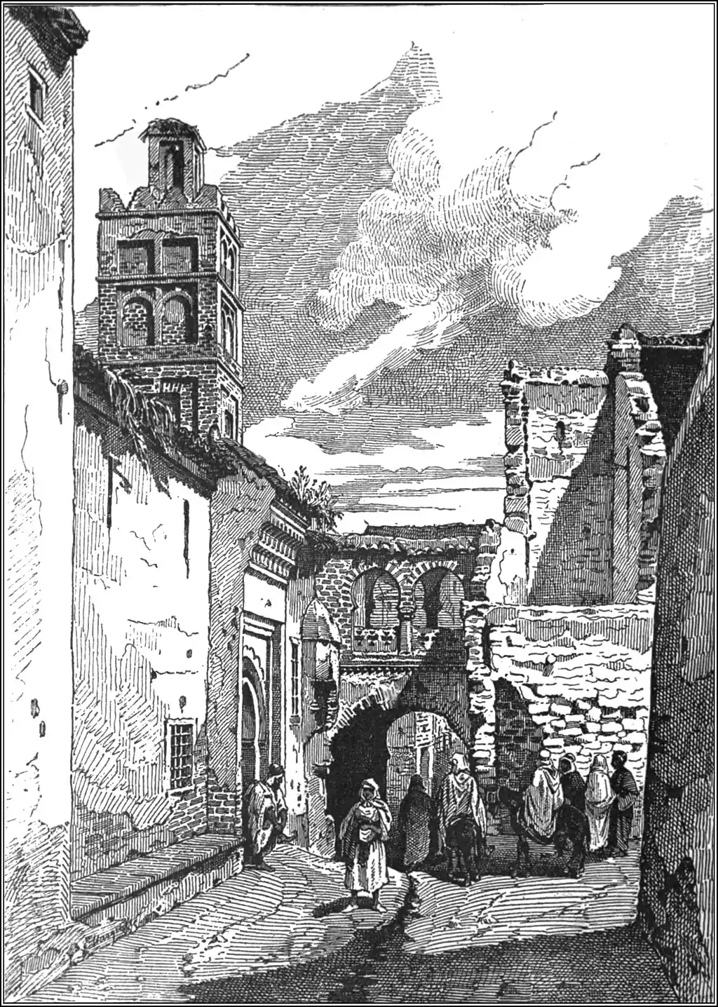 and the Mussulmans, the latter being still mainly confined to the labyrinth of slums stretching thence upwards to the kasbah. This Mussulman quarter, which has undergone no change since the conquest, is inhabited, as in the time of the Deys, by a motley gathering of Kabyles, members of the Mzab tribe, immigrants from the Tugurt, Wargla, and Sûf oases, and Bambara, Haussa, and other Negroes from Sudan. An ethnographic survey of the upper town may thus be compared to a journey in the interior as far as Timbuktu.