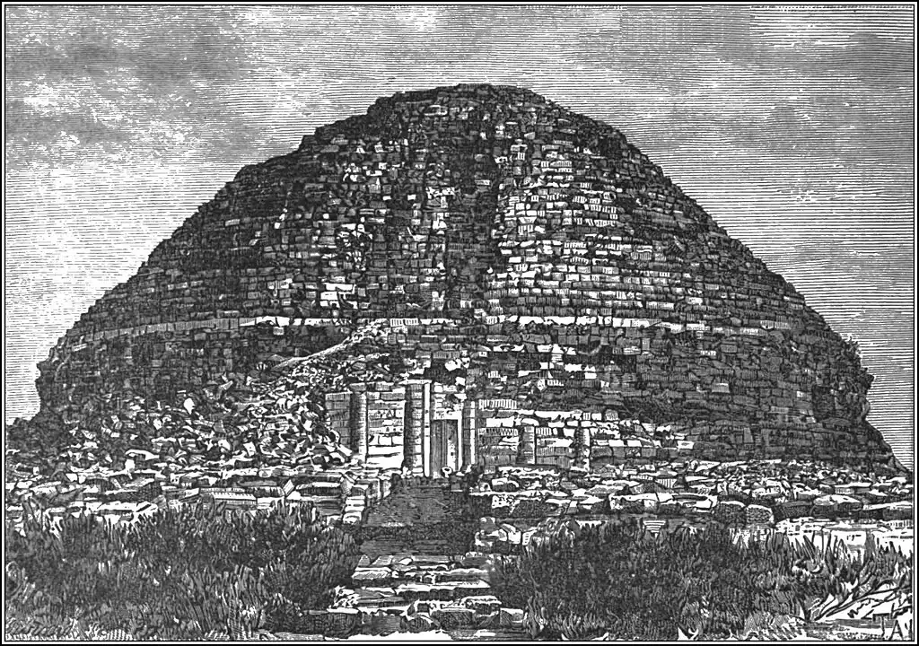 of his kingdom, and destroyed by the French in 1841. South-west of the two Tiarets, and in the same basin of the Mina, lies the Berber town of Frenda, east of which three northern spurs of the Jebel Akhdar, or "Green Hills," are surmounted by the so-called jedars, quadrangular structures some 60 feet high, terminating above in step pyramids. On the neighbouring cliffs are some prehistoric sculptures and colossal dolmens, one of whose blocks is said to be no less than 150 feet long.