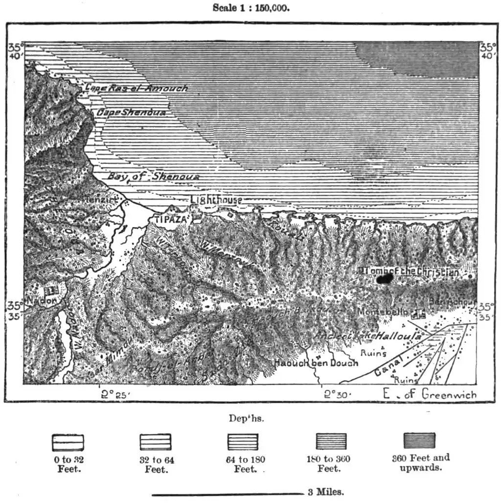 About midway between Collo and Bougie stands the ancient seaport of Jijili, which still preserves in a slightly modified form its Libyan name of Igilgili, handed down by inscriptions from the very dawn of history. The tombs excavated in the cliffs along the coast are the work of Phœnician colonists, as shown by their perfect