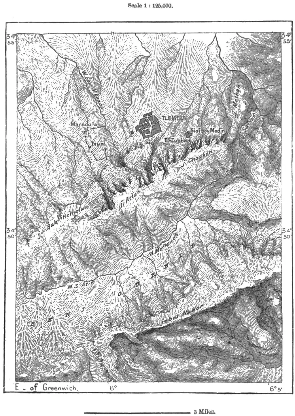The European settlement of Remchi, conveniently situated below the confluence of the Isser and Tafna, forms the chief station between Tlemcen and its natural outport, Beni-Saf, which, notwithstanding a badly protected harbour, does an active