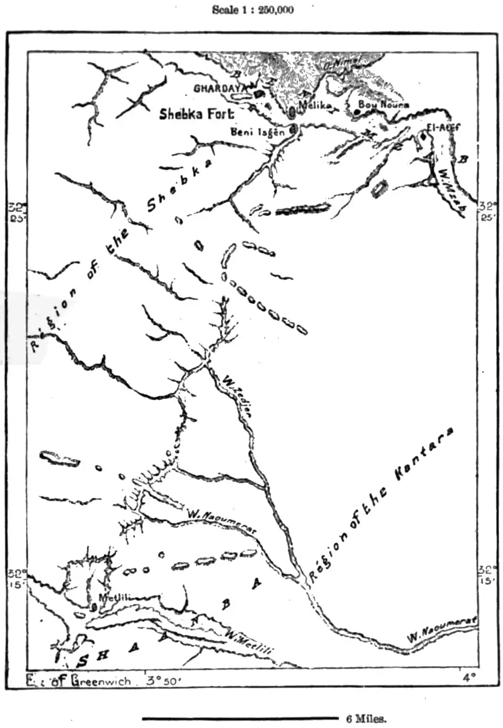 The Shott Meruan, which forms the natural basin of all these old streams from the south, is connected with the Shott Melghigh proper only by a narrow channel,