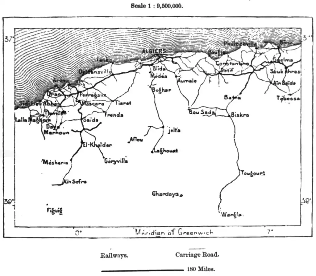 In Orania, or Western Algeria, the French have advanced far less southwards than in the provinces of Constantine and Algiers. West of the Jebel Amur and