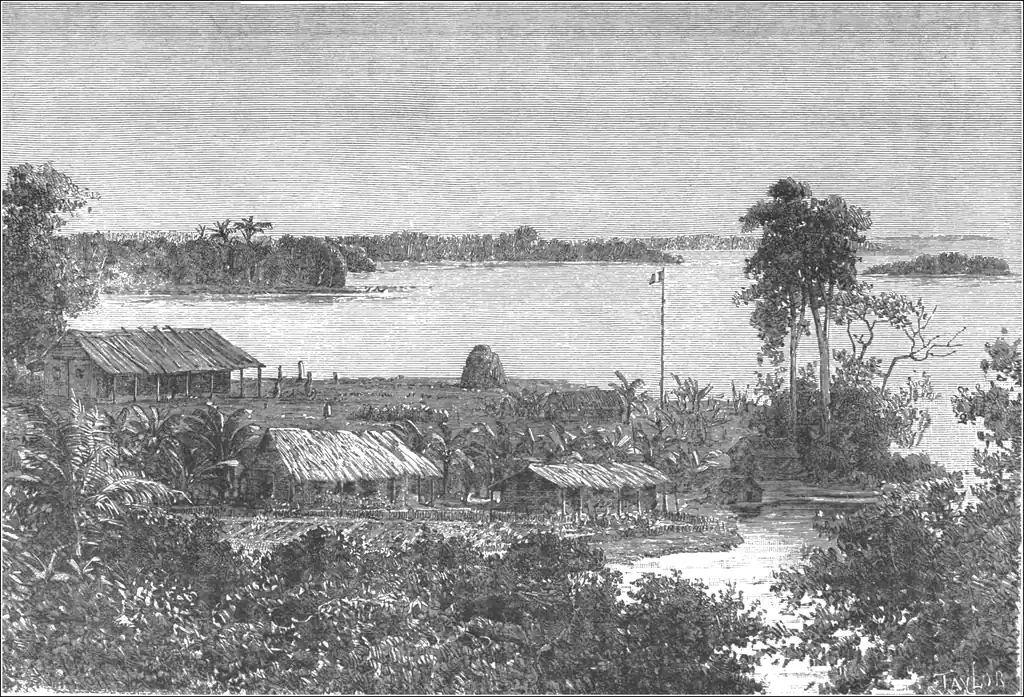 has been chosen by the International African Association as the site of its most advanced station in the interior. It occupies an excellent position at the extreme limit of the navigation of the Middle Congo, at the point where it begins to trend westwards and near the confluence of the large Lu-Keba (Mburu) affluent from the east. This place, which is known by the English name of Fall-Station, or Staniey Falls, was recently stormed, and its little garrison of Haussa and Ba-Ngala Negroes, with their European officers, either massacred or put to flight by the Arab slave-hunters.