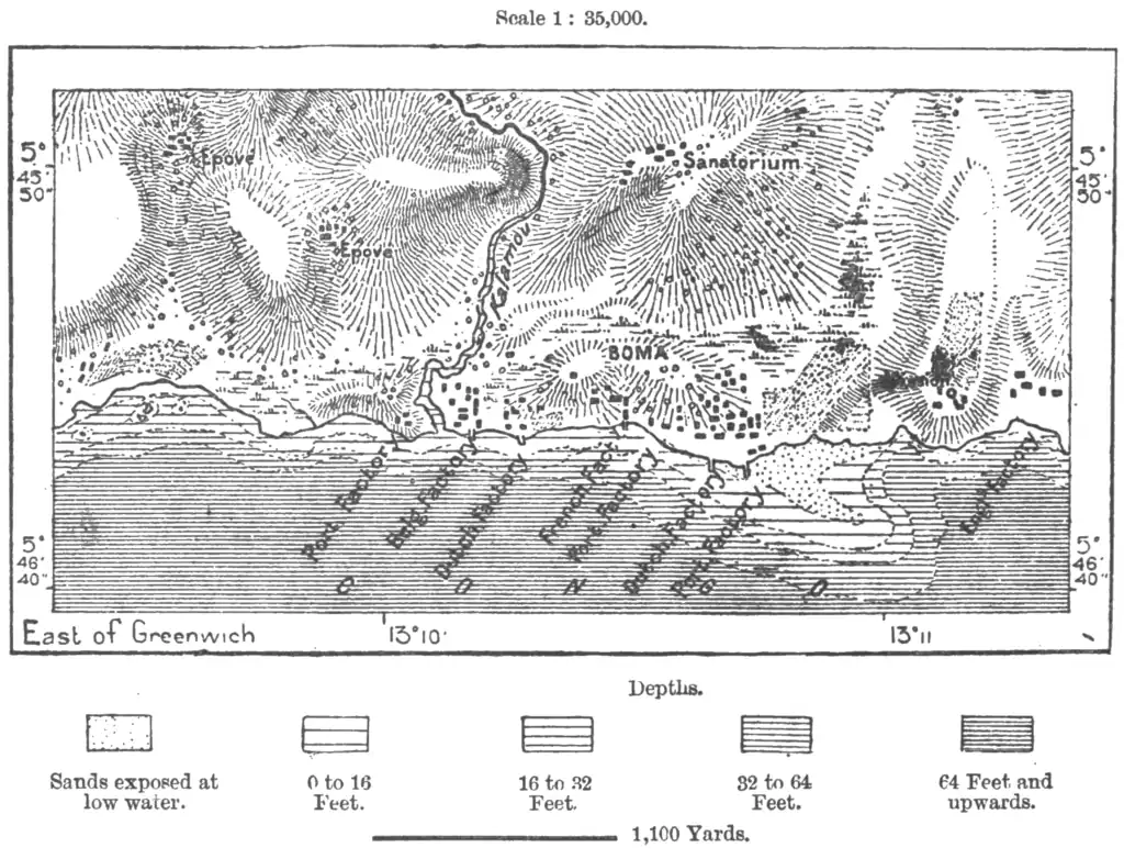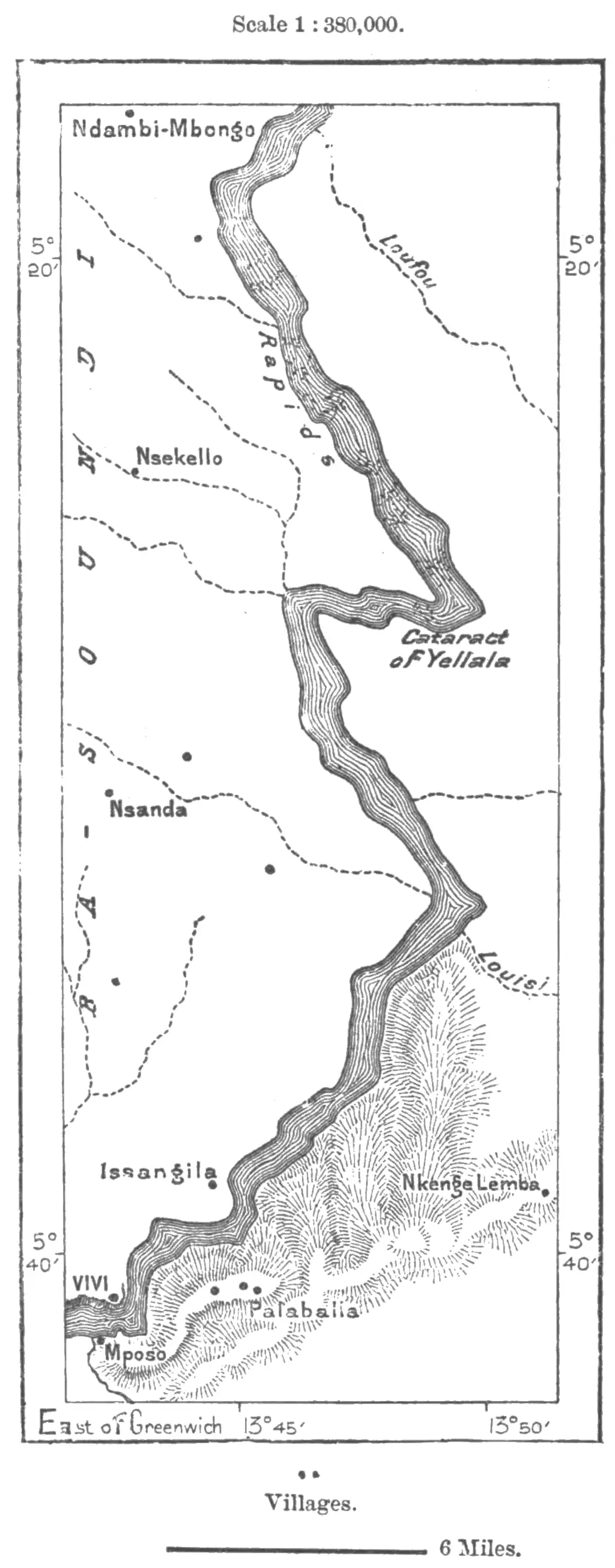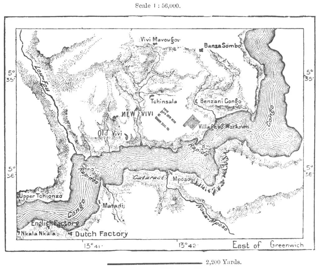 After being twice displaced as the capital of the Congo Free State, the station of Vivi (M' Vivi) has been finally abandoned, and the seat of Government removed farther down to Boma, on the same side of the river. Both the old and new stations of Vivi, standing on plateaux commanding the right bank of the river a little below the last cataracts, were found to suffer from the same inconvenience