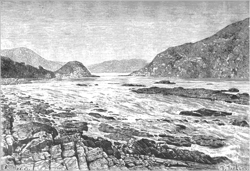 HE great river whose waters colour the sea far beyond the Cabinda coast, takes its rise thousands of miles from its mouth on the Atlantic, its farthest headstreams having their source much nearer the Indian than the Western Ocean. During its long course, describing a vast semicircle through the interior of the continent, it receives diverse names from the riverain populations, all, however, having probably the same meaning of "Moving Sea," or "Great Water." The first navigators hailed it as the Poderoso, or "Mighty Stream," but afterwards learnt from the natives the term Zaire (Nzadi), still current amongst the Portuguese.