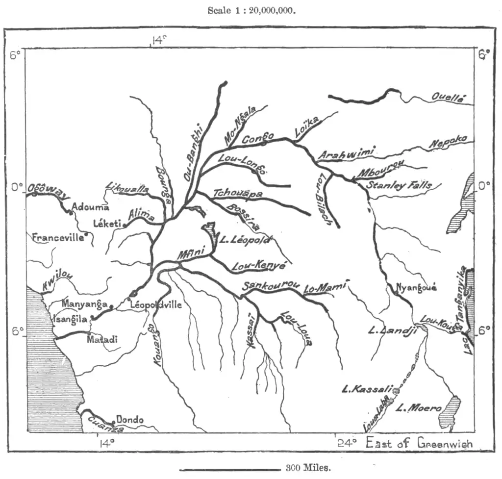 Hitherto the commercial and political energies of the Congo Free State have been mainly concentrated at two points, Stanley Pool above the cataracts, and the lower reaches between the Yellala Falls and the mouth of the estuary. The territory is doubtless of vast extent, with a population equal to that of many powerful European states; but the whites have scarcely yet secured a firm footing in the land.