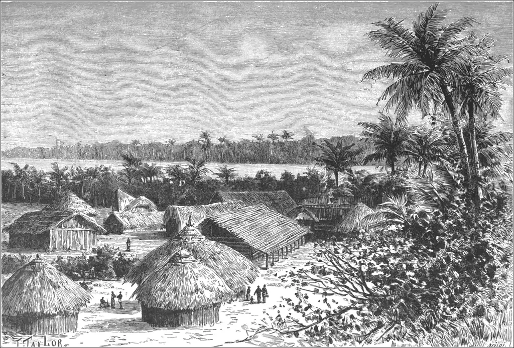 The station of Lu Longo (U-Ranga), which overawed the large town of the same name, has been abandoned; but Equatorville, farther south, is still maintained. It takes its name from its position close to the equator on an elevated plateau at the confluence of the Congo and the Juapa, or Black River. Here a Protestant mission has already been established. "The banks of the Tkelemba, which joins the Congo over a mile above the Juapa, is densely peopled, Leki dotted over with numerous villages, usually defended" by high palisades and deep ditches. Probably no African people disfigure themselves more by tattoo markings than do the tribes in this riverain district, By means of incisions, ligatures, and other devices, they contrive to cover the features with excrescences