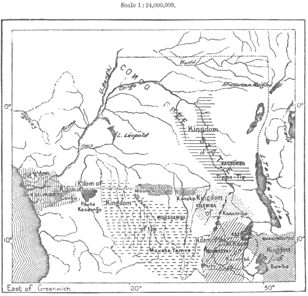 Although belonging to the Kassai system, the Kwango traverses a region which has had a very different historic evolution from that of Lunda Land. It is the true Zaire, which was known to the Portuguese since the sixteenth century, and whose name is still attributed to the Lower Congo. Many parts of its valley have been regularly visited by Portuguese traders for the last three hundred years, and its markets have served as the intermediaries of traffic between the west coast and the uncivilised inland populations.