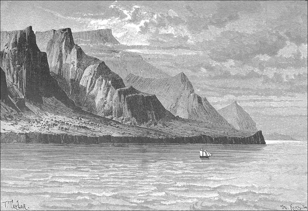 With the "Land of Life" have also disappeared several islands, the existence of which seemed firmly established by the circumstantial statements of navigators. Thus modern explorers have vainly sought for the island of Saint Matthew, which long figured on the old maps about the latitude of 2° 30' south of the equator. Yet the commander of a squadron of seven vessels had landed and remained fourteen days on this island in 1525. The description which he gives of it corresponds exactly with that of Annobon, which was probably the land visited by him, although he was out of his reckoning by some 600 miles, no unusual error in the history of navigation at that time. Another island, Santa-Croce, or Santa-Cruz, TBISTAM DA CUNHA. 97 also figured on the charts about ten degrees to the west of Saint Matthew, although no record existed of its discovery. This name may have possibly gone adrift on the high seas through confusion with the land of Santa-Cruz, the first Portuguese appellation of the Brazilian coast. G0N9AL0 Alvarez, or Gough. In the Austral Atlantic, the remotest island that may still be regarded as belonging to the African waters, is Goncalo Alvarez, so named from the pilot who discovered it early in the sixteenth century. This name, in its contracted form written / de g° Alvarez, became transformed to Diego Alvarez ; and when Gough rediscovered it in 1713, it became also known by his name. It is a craggy mass 4,350 feet high, and about 18 miles round, on the north and east fringed by three rocky islets, one of which takes the name of Church Rock, from its resemblance to a lofty nave flanked by its tower. A few sheltered creeks afford a landing on the large island, where settlers might be attracted by some fertile valleys, slopes densely clothed with brushwood, and waters well stocked with fish. But the island has only temporarily been visited by some American seal-fishers, who have reclaimed no land, living during their sojourn on fish and on birds which they attracted at night by large fires kindled on the headlands, Tristam da Cunha. About 240 miles to the north-west of Gough lies another rocky group on the highway between the Cape and the La Plata estuary, about 1,800 miles from the former and 2,400 from the latter. This is the Tristam da Cunha archipelago, so named from a navigator, " whose name," sings Camoens, " shall never extinguished be in the Austral isles washed by the Austral sea." Since its discovery in 1506 the group has been frequently visited by navigators, for it lies south of the zone of regular south-east winds, where vessels fall in with the strong western breezes, which enable them more easily to double the Cape of Good Hope. The large island is dominated by a regular snow-clad cone, rising to a height of from 8,000 to 8,500 feet, and visible at a distance of over 90 miles. Inaccessible, lying about 20 miles to the south-west of Tristam, takes its name from the steep cliffs, which can be approached only through some narrow ravines, and which form the pedestal of a rugged plateau often veiled by the clouds. Nightingale, 12 miles south-east of Inaccessible, is little more than a twin-peaked rock encircled by islets and reefs. These volcanic islands have altogether an area of over 20,000 acres, the principal island comprising over three-quarters of the whole extent. They are composed entirely of lavas, either compact or broken into innumerable frag- ments, or else reduced to a rich blackish mould. The highest peak in Tristam, which has been several times ascended, terminates, like the volcanic cones in the other islands, in a crater now flooded by a blue lake. Towards the north-west the lava-streams have acquired the appearance of a vast moraine descending down to the sea, and fringed by a sort of natural wall of blocks for a distance of some miles. These may possibly be traces of an old glacial epoch.