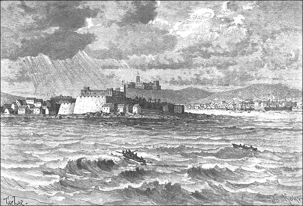 the Leeward, in contradistinction to the Windward Coast, exposed to the fury of the Atlantic storms. It is divided by no prominent natural landmarks into distinct regions, nor have the political frontiers been accurately drawn till quite recently, to indicate the extent of territory appropriated by France. This territory, which extends for a still undetermined distance inland, presents a coast-line of about 130 miles.