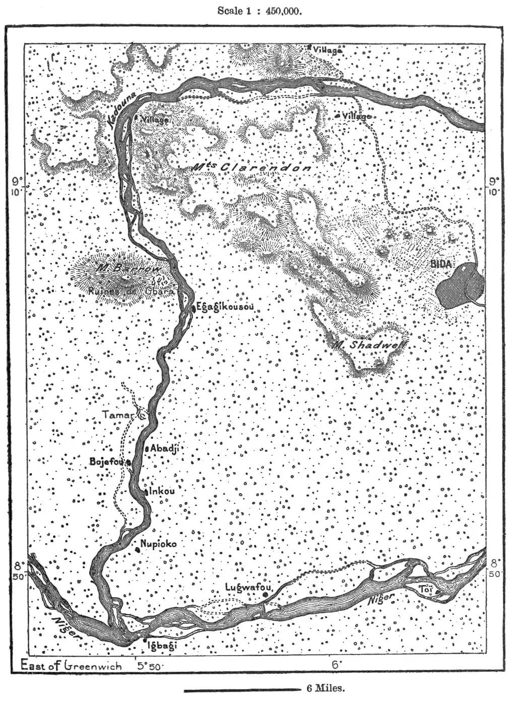 Shonga-wharf, 15 miles farther down, has been chosen by the English as the chief depôt for goods destined for Yoruba.