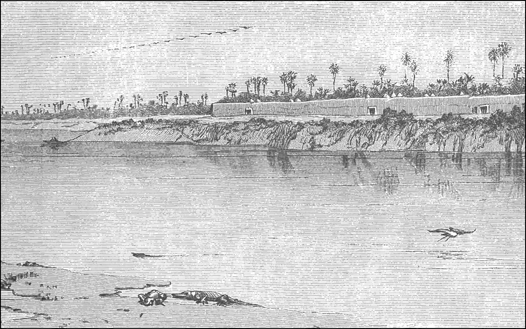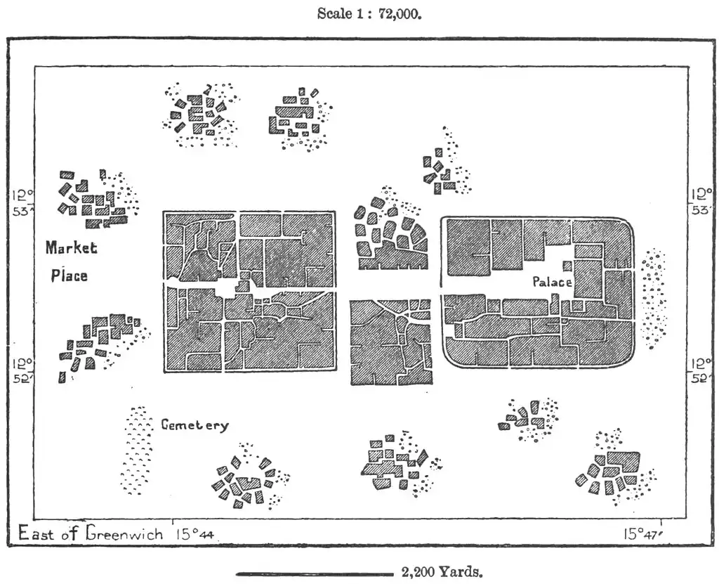 Kuka, one of the great cities of the interior of the continent, is said by Nachtigal to have a population of from fifty to sixty thousand, without counting the pilgrims, traders, adventurers from all parts of Sudan and of the Moslem world from Marocco to Mesopotamia. It consists of two distinct quarters, forming two regular parallelograms surrounded by walls, with groups of cabins dotted round about. From the neighbouring plain, stretching away towards the south-west shore of the lake, the city is scarcely visible, the trees overshadowing every house giving it rather the appearance of a thickly wooded tract. The western and more populous section, forming a regular quadrilateral nearly two square miles in extent, is the centre of all the life and trade of the place, the eastern section, containing the royal palace and most of the courtiers, being comparatively deserted. During the rainy season the streets are converted into quagmires, and stagnant ponds are even formed, in one of which Nachtigal saw a little crocodile living on the offal thrown to him by the neighbours.