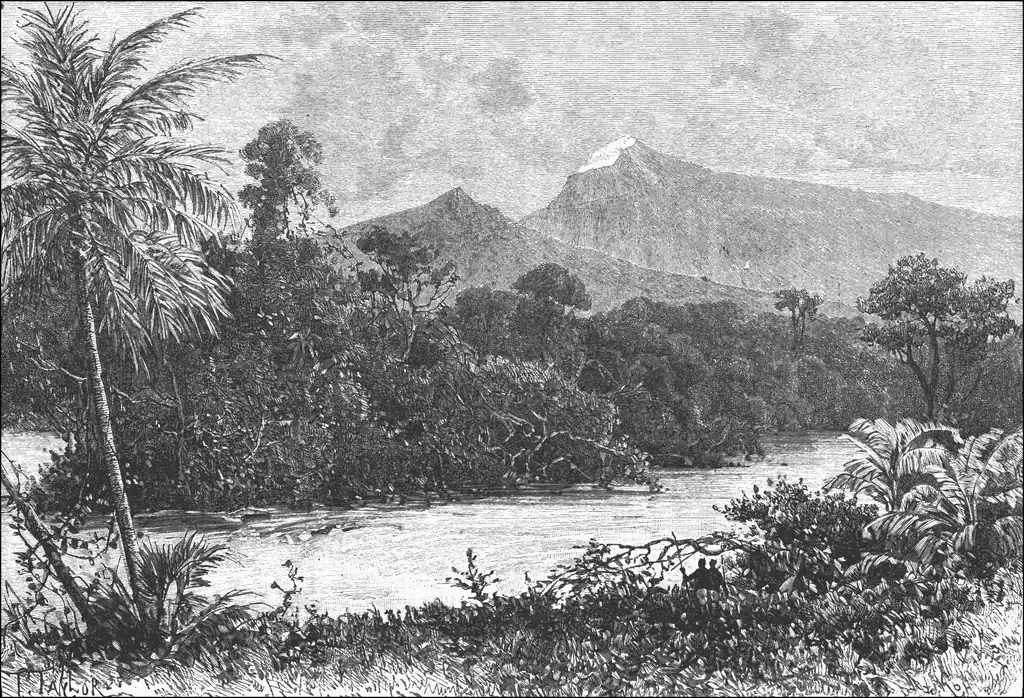 From the heights dominated by the Albert Peak, the eye sweeps over a vast horizon, commanding a superb view of the surrounding lowlands and island studded waters, and towards the north of other cone-shaped masses. In 1885 Schwarz and Knuston, who penetrated over 70 miles in this direction, found the