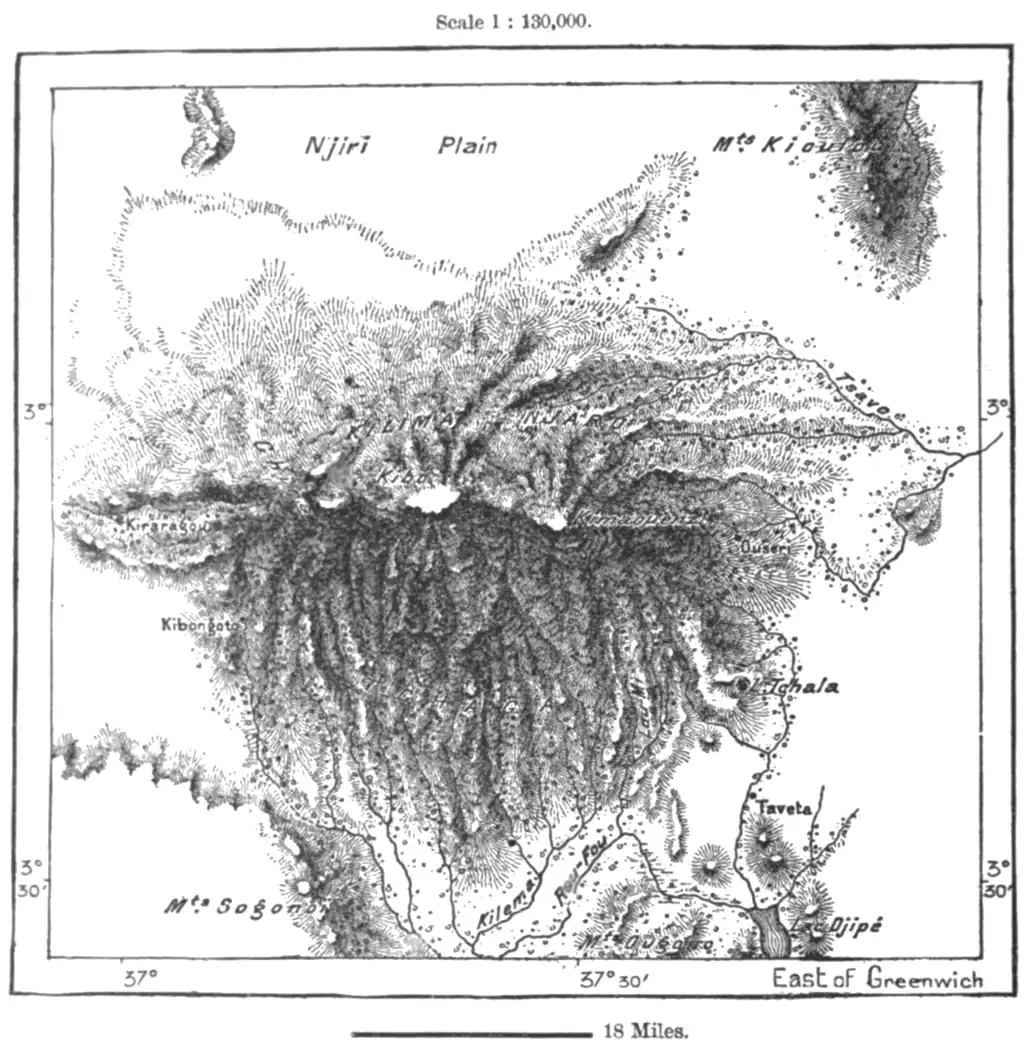 all these secondary heights, whether isolated or grouped in clusters, disappear at some distance from Kilima-Njaro, leaving the monarch of African mountains to stand out in solitary grandeur.