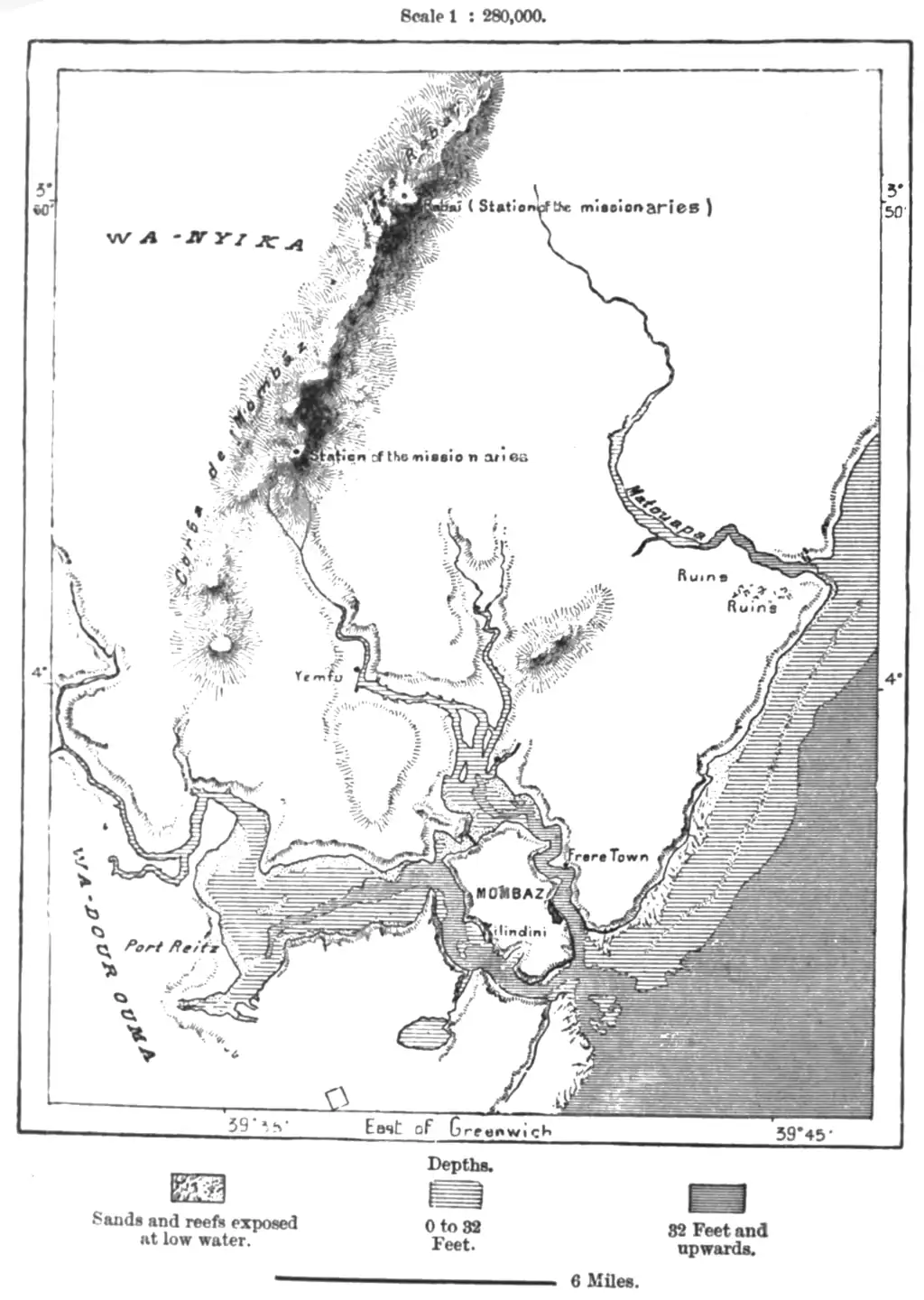 Some Wakamhas from the north-west, and Swahelis from the coastlands, as well as various other immigrants, also dwell amid the Wanyika communities. In their territory numerous colonies have also been established by the Mohammedans, whose sheikhs are gradually becoming formidable rivals to the indigenous tribal chiefs. liesides these stningers the European missionaries have for some years been engaged in evangelising the Wauvika nation. One of their most flourishing: stations is that of Rabai, which was founded about the middle of the present century by Krapf and IJebmunu on an eminence in the neighbourhood of Morabaz. From the crest of this hill, about 1,000 feet high, the view sweeps over a vast horizon of plains, reefs, islands, and surf-beaten headlands.