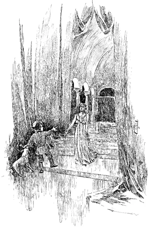 Night was coming. Noiselessly, as if by magic, the Mikkamenkies faded from my sight, stealing away in search of beds, and as the gloom crept into the great throne room, some one plucked me gently by the hand and a soft voice whispered,—
