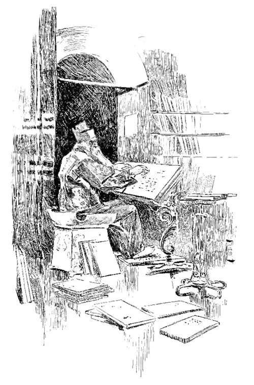 He received me very cordially, although I interrupted him at his studies, for, as I entered his apartment, he was in the act of reading four different books at the same time: two were lying on the floor, and he was perusing their raised characters with the soles of his feet, and two others were set up on a frame in front of him and he was deciphering them with the tips of his fingers.
