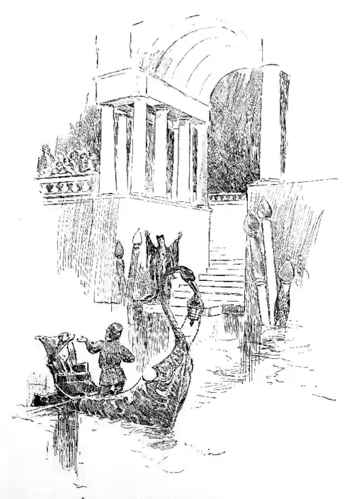 Soon now huge icicles began to dot the roof of rock that spanned the river, and shafts and columns of ice dimly visible along the shore seemed to be standing there like silent sentries, watching our boat as it threaded its way through the ever-narrowing channel. And now, too, a faint glow of light reached us from I knew not where, so that by straining my eyes I could see that the river had taken a sweep, and entered a vast cavern with roof and walls of ice fretted and carved into fantastic depths and niches and shelves and cornices, with here and there shapes so fanciful that it seemed to me I had entered some vast hall of statuary, where hero and warrior, nymph and maiden, shepherd and bird-catcher, filled these shelves and niches in glorious array. Farther advance by water was impossible, for the blocks of ice, knitted together like a floe, closed the river completely. I therefore determined to make a landing—draw my boat upon the shore, and continue my journey on foot.