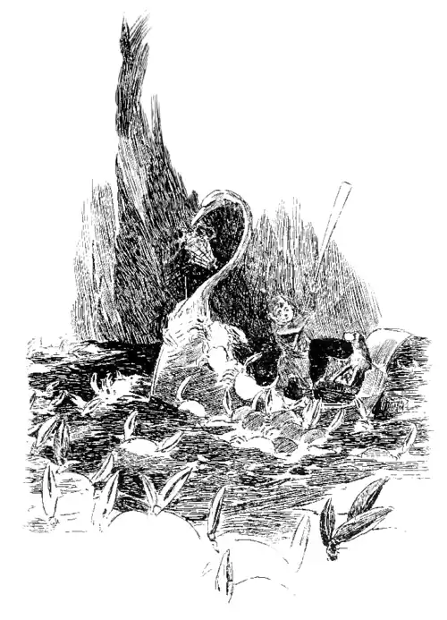 "But I have of you, gentlemen," I continued, for now I recollected what the learned Don Fum had said about the frozen land of the Koltykwerps, or Cold Bodies,—"and as proof of my peaceful intent, like a true knight I now offer you my hand, and beg that you will conduct me into the presence of his frigid Majesty."