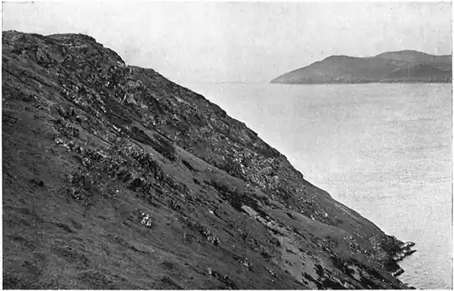 Linnets twittered over the gorse, lapwings called on the lower slopes and in the fields below, cormorants and shags flew by over the water; on the ledges and in crannies below the edge of the cliffs guillemots and razor-bills were crowded, and puffins were abundant on the sea. These last do not appear, at any rate now, to nest on Bardsey, but there are large colonies on islands in Cardigan Bay.