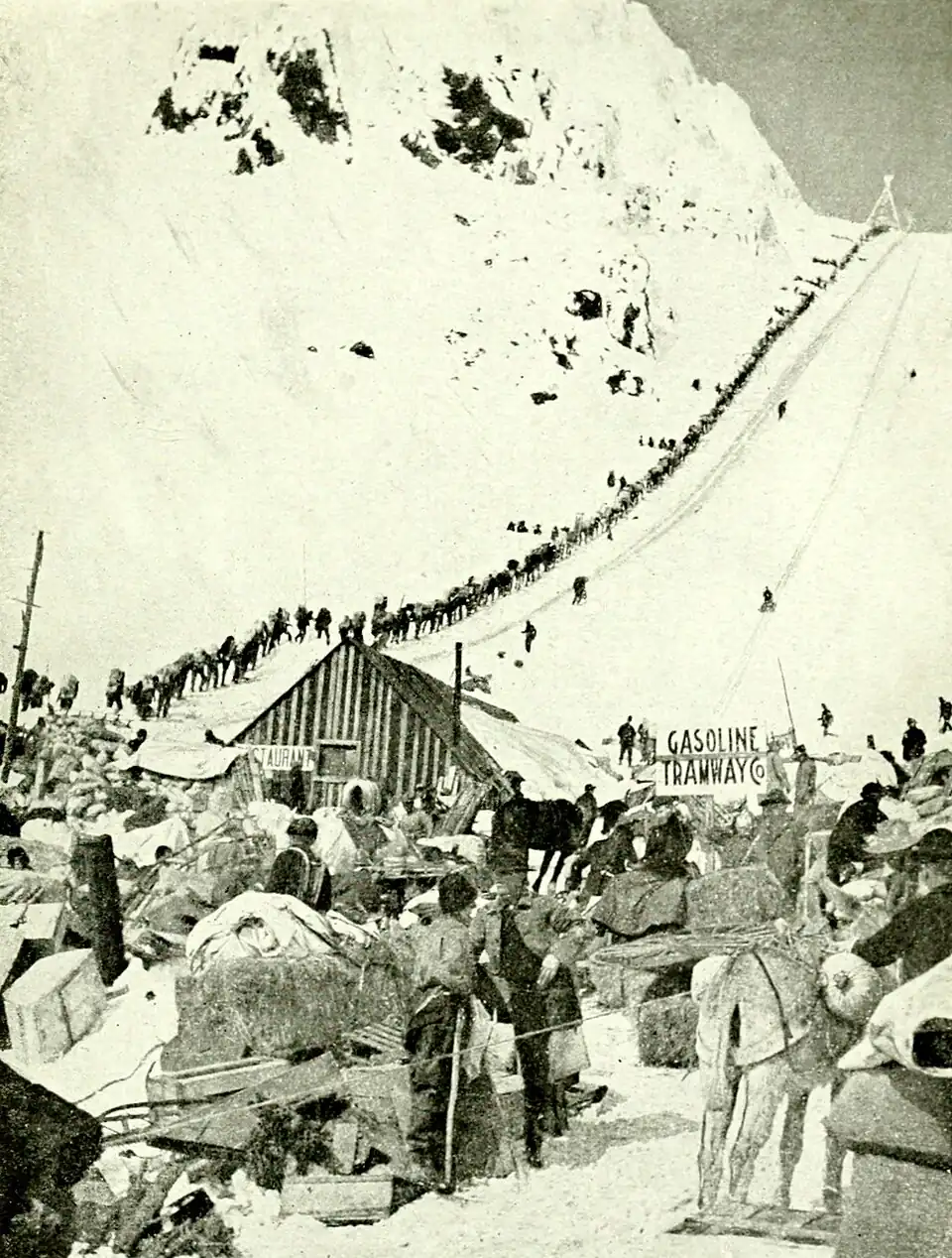 | MINERS IN CHILKOOT PASS, BOUND FOR THE KLONDIKE GOLD FIELDS |