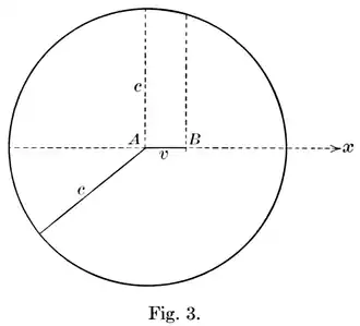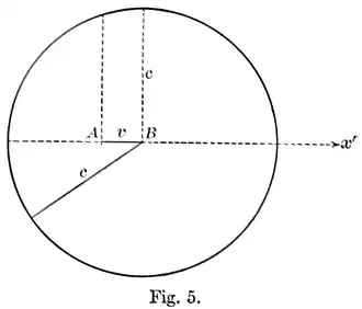 for the first observer has no advantage over the second observer. can exactly with the same right as assert that he is at rest at the center of the spherical wave, and for , after unit time, the wave appears as in Fig. 5, while its appearance for the observer after unit time, is represented by Fig. 3.[1]