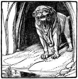 "Take with thee a copper coin and a loaf of bread and go down that deep defile there till thou comest to a deep river and there thou wilt see an old man ferrying people across the river. Put the coin between your teeth and let him take it from you, and he will carry you across, but speak not to him. Then, on the other side, thou wilt come to a dark cave, and at the entrance is a savage dog; give him the loaf of bread and he will let thee pass and thou wilt soon come to the Queen of the Nether-World. Take what she gives thee, but beware lest thou eat anything or sit down while thou art within the cave."