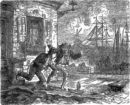 So they made a boat out of a newspaper, and placed the tin soldier in it, and sent him sailing down the gutter, while the two boys ran by the side of it, and clapped their hands. Good gracious, what large waves arose in that gutter! and how fast the stream rolled on! for the rain had been very heavy. The paper boat rocked up and down, and turned itself round sometimes so quickly that the tin soldier trembled; yet he remained firm; his countenance did not change; he looked straight before him, and shouldered his musket. Suddenly the boat shot under a bridge which formed a part of a drain, and then it was as dark as the tin soldier’s box.