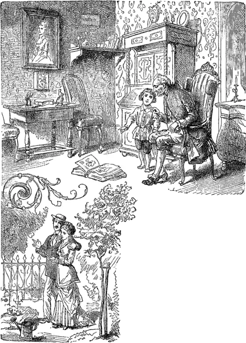 On the wall near the centre of the room hung the picture of a beautiful lady, young and gay, dressed in the fashion of the olden times, with powdered hair, and a full, stiff skirt. She said neither “thanks” nor “creak,” but she looked down upon the little boy with her mild eyes; and then he said to the old man,