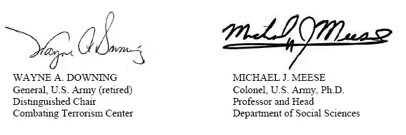 The work for this project was done by a team of associates and faculty members in the Combating Terrorism Center, which was led by Lieutenant Colonel Joe Felter and included significant work by Major Jeff Bramlett, Captain Bill Perkins and Professors Jarret Brachman, Brian Fishman, James Forest, Lianne Kennedy, Jacob Shapiro, and Tom Stocking. They have tried to make this as user-friendly as possible, with hyperlinks to all references throughout the documents to facilitate understanding and cross-checking of the source material. Additional questions about the report can be directed to LTC Felter at (845) 938-3247 or joseph.felter@usma.edu.