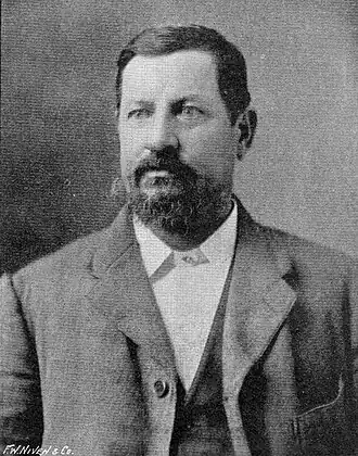 Looking away from his immediate surroundings, he decided that there were greater opportunities of making a fortune out of jarrah than out of red-gum. He had heard much of Western Australian forests and the splendid qualities of her woods, and at the latter end of 1879 he made up his mind, sold his timber and butchering business, packed his milling plant, and came to this colony. He reached here in 1880, and, with the aid of two men he brought with him and others employed locally, erected his plant at Mahogany Creek, on the York Road. He operated on the jarrah, and his trade relations expanded beyond his best anticipations. Each year saw his wealth augmented, his plant more powerful, and his assistants more numerous. At the inception of his local enterprise, he engaged but one small engine, but this was soon found insufficient, and at the time of his finally selling the business, thirteen years later, in 1893, he employed seven. Ten men were able to cope with his orders at the beginning, but in the course of a few years he engaged at one time as many as 120. Orders for jarrah came to the colony from all over the world, and naturally those engaged in a large way in the denuding of the woodlands gradually became wealthy. It was truly an auspicious day when Mr. Lacey determined to come to Western Australia. He was the first to open saw-milling plant and yards of any dimensions in Perth, and by means of his Mahogany Creek location and his success in Perth, in 1893 he retired from work with a competency.