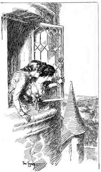 "I will throw myself from the window," continued the Burgravine, carefully propping her plump elbows on the stone sill to gaze down with safety.