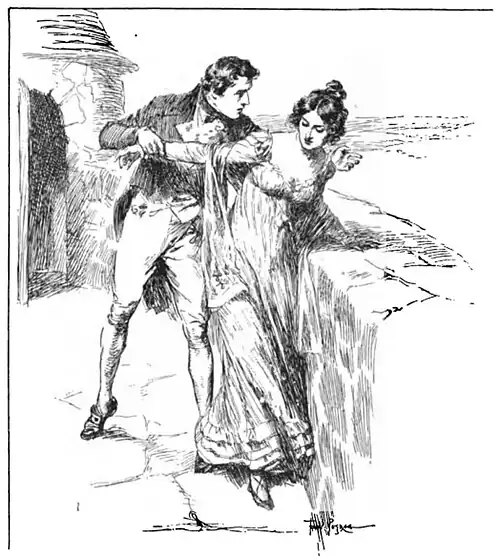 "Here I come," said he, "up the ivy, at the risk of my neck, I, upon whom your worthy lord and master would set his dogs without a moment's compunction if he caught me. What a plight should I be in had I counted upon your tender heart sparing a tremor for my perils! 'Tis enough to make a man desire to walk in by the door for the rest of his life!"