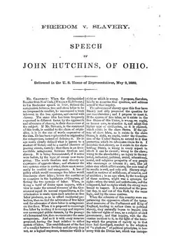 Freedom v. slavery : speech of John Hutchins, of Ohio, delivered in the U.S. House of Representatives, May 2, 1860