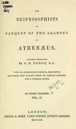 The Deipnosophists; or, Banquet of the Learned, of Athenaeus