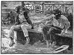 At the corner, by the old calaboose, there was the boatswain waiting.
