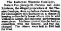 The Indecent Theatre Comique. Robert Fox, George H. Christie and John Lindauer, the alleged proprietors of the Theatre Comique, were up before Justice Stilsing for examination this morning on a charge of keeping a disorderly house where rum is sold without a license, and indecent performances were given. Lindauer proved that he had no connection with the theater, and was discharged. The others were held [on] $500 bail for trial.