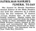 Patrolman Kahrar's Funeral To-Day