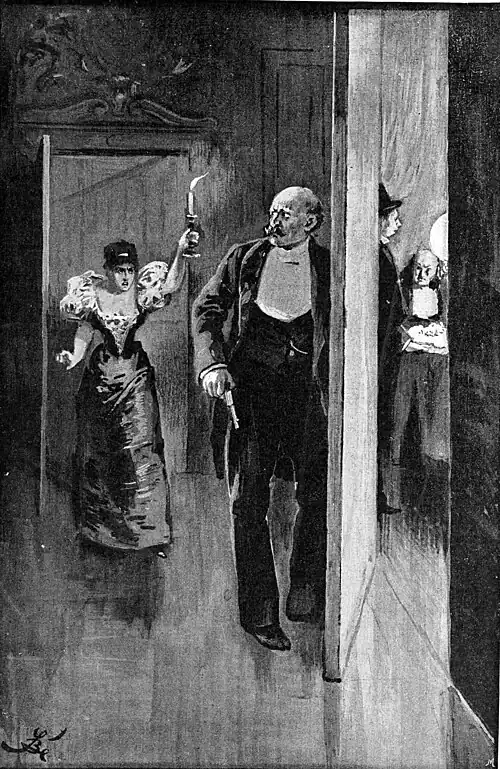 "Abel," I said, "it's time you went. Tell the men to bring a short ladder with them. They'll have to come in by the balcony—but only when I make a sign. The signal will be the cracking of the glass of that lamp you can see upon the table there. Did you bring my pistol?"