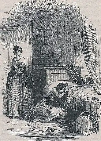 Now, there were many stairs and passages that she had to traverse in passing from that part of the spacious house to the chamber she had secured for her own occupation. When she had almost completed the journey, and was passing along the gallery in which her room was, she heard an angry sound of muttering and sobbing. A door stood open, and within she saw the attendant upon the girl she had just left; the maid with the curious name.