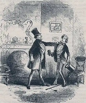 ‘Stop, sir!’ cried Mr Dorrit. ‘Stop! Sit down. Confound you, sit down!’