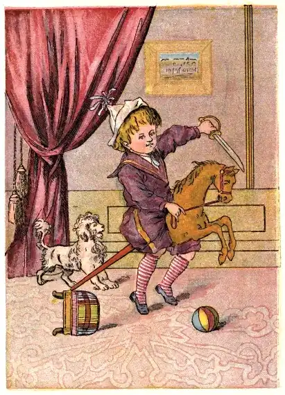 A little boy was playing with his hobby-horse one day, and making a great deal of noise, when an old gentleman, who lived in the next room, called to him and said, "Can you not play more quietly?" The little boy answered, "It is raining and I can't go out of doors." The old gentleman said, "But can you not make less noise, for I am sick and need rest." The little boy said, "If that is the case, I will not make any noise." When his mother came home, she praised him for his kindness, and said he did right. Little Johnnie, for that was his name, had forgotten all about the old gentleman, when, a week after, a large box came to him on which was written, "To my young neighbor, a souvenir of a rain day." The box was full of beautiful lead soldiers and cannons, with which he had a great deal of pleasure. When his mother saw them she said, "You see, my son, kindness always receives its reward."