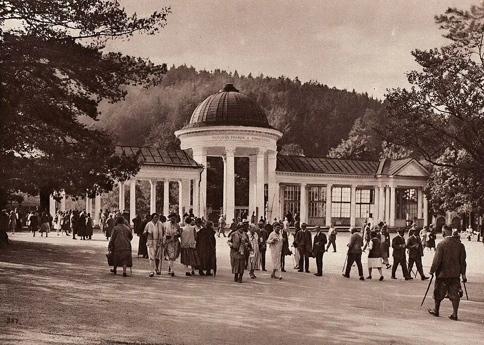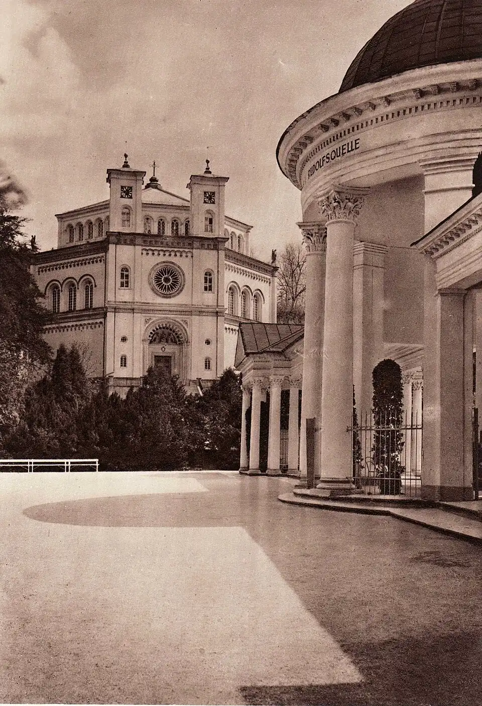 | MARIÁNSKÉ LÁZNĚ. The district of the healing Springs on the brook of Auschowitz is since 1197 possessed by the abbey of Teplá. The healing power of the Springs has been known since the XVIth century. In the year of 1528 there has been attempted to get the salt from the source of Ferdinand, but without success. The systematical use of the sources, healing and economic, has been established till about the end of the XVIIIth century, by the effort of dr. Nehr and the abbots of Teplá. The previous attempts were only ephemeral. The conditions of the flourish of the place have been created by the chemical analysis of the water by the eminent specialists who declared its healing power. In the first decades of the XIXth century the sources have been couvered by constructions that are partly to see still nowadays. The first establishements date from the year of 1781 and about 1820 there was here already a great many of houses. The healing factors are the spring of Ferdinand, the Well of the Cross, the Spring of Maria, of Caroline etc., the mud-baths, the production of the salt of Teplá and the transmission of the healing water. Moreover, the beauty of the surrounding country adds much to the renown of our watering-place. | FRANTIŠKOVY LÁZNĚ. (The Watering-place of Francis.) These Springs and moors are very ancient. As was ascertained by the discoveries archaeologic, there has been originally lived only on the margins of the moors. The more explicit news about the springs we do receive only about the begin of XVth century. The healing power of the sources is soon described and mentioned in the contemporary treaties. Since the year of 1600 there begins the transmission and about the begin of the XVIIth century there come to Cheb the strangers willing to make use of the sources. Originally the water was used only to drink, but from 1707 also to bath. About the year of 1660 one begins to make use of the source of Francis. First of all there has been built the filling-house and the hotel. About the end of the XVIIth century the town of Cheb has bought here a tract of land and has founded on it in the year of 1793 a colony that is to be regarded as a good example of classistical plan-making. The place has been named originally the Village of Francis, but in the year of 1807 it has been given the name of Františkovy lázně (The Watering-place of Francis). In the year of 1865 the place became a town. |