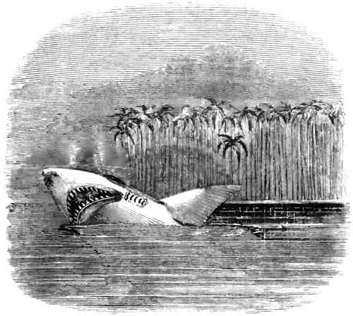 The horrors inflicted on the miserable sufferers by the shameful traffic in men, during the transit across the Atlantic, are heightened by these ferocious animals. Their instinct apprises them of the probability of prey; the air, tainted with the effluvia of a multitude of human beings crowded together in a tropical climate, probably awakening their vigilance and whetting their appetite. It is affirmed that numbers of Sharks almost invariably attend every slave-ship throughout her voyage, crowding around her stern, awaiting with eager expectation the unceremonious committal to the deep of the numerous wretches who fall victims to suffocation, disease, or despair.