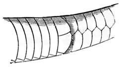 In the Serpents, the four limbs which we have seen gradually to become obsolete in the latest forms of the Saurian group, are no longer found, either in external projections or in internal bones; there is neither breast-bone, nor pelvis, nor shoulder. In one Family, however, there are two horny spurs or hooks on the hinder part of the body, which are connected with minute bones imbedded in the flesh, and seem to be the rudimentary representatives of posterior limbs; they are, however, of no use in progression, but answer another purpose in the animal’s economy. The ribs are immensely numerous and encircle a great part of the trunk; and the free extremities of these form, as we shall presently describe, the ordinary instruments of progressive motion in this Order. The vertebræ, or joints of the spine, are connected not by two hollow facets, filled up with cartilage, but by one convex face, filling that which is concave.