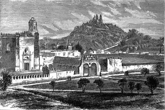 We visited many other churches, the old college of the Jesuits, and the library—now secularized and thrown open to the public—which contains twenty-four thousand four hundred volumes, mostly of great age, and valuable only to the antiquarian; the school of design; the Glass Factory of Puebla, which is among the most extensive and complete works of the kind on the continent; the hills and fortifications of Loreto and Guadaloupe, from which the French army, forty thousand strong, was repulsed in the attack of the Cinco de Mayo, and many other objects of interest in and around Puebla.