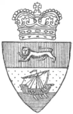 This is the only generally known and legally recognized symbol of New Brunswick. It bears the familiar Lion and Galley, arranged as in the crude accompanying sketch. It was adopted in 1868, but its history is so closely bound up with that of the Province Seal that we may best consider the two together.