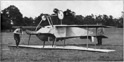 An example of rough usage. The Sopwith "Scout," a very fast Single Seater. After an upset due to bad landing. The wing structure bore the shock and weight; the Pilot escaped injury.